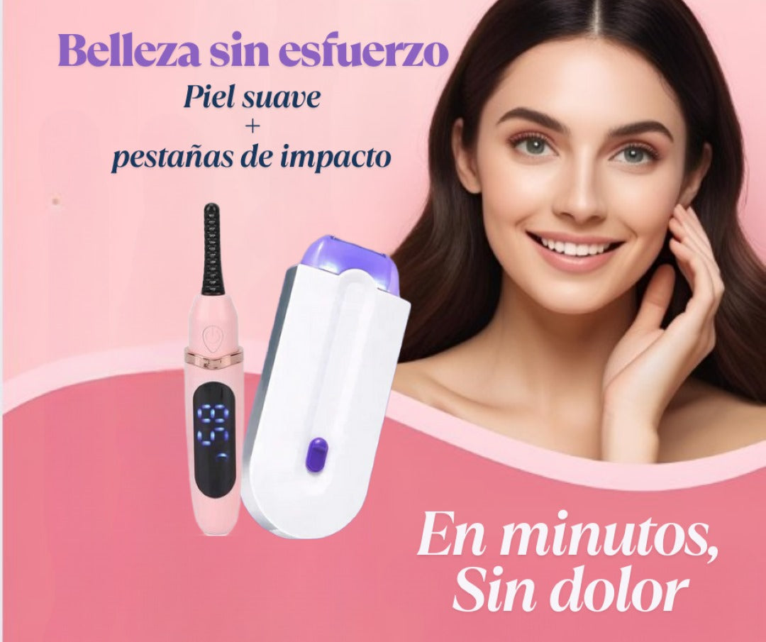 Consigue piel suave y pestañas rizadas en minutos. Sin citas, sin esfuerzo, desde la comodidad de tu casa. ✨El Combo Glow Up Duo✨ Elimina el vello sin dolor ni irritación y da a tus pestañas un rizo duradero de impacto. La solución 2 en 1 que cuida tu piel y realza tu mirada al instante.